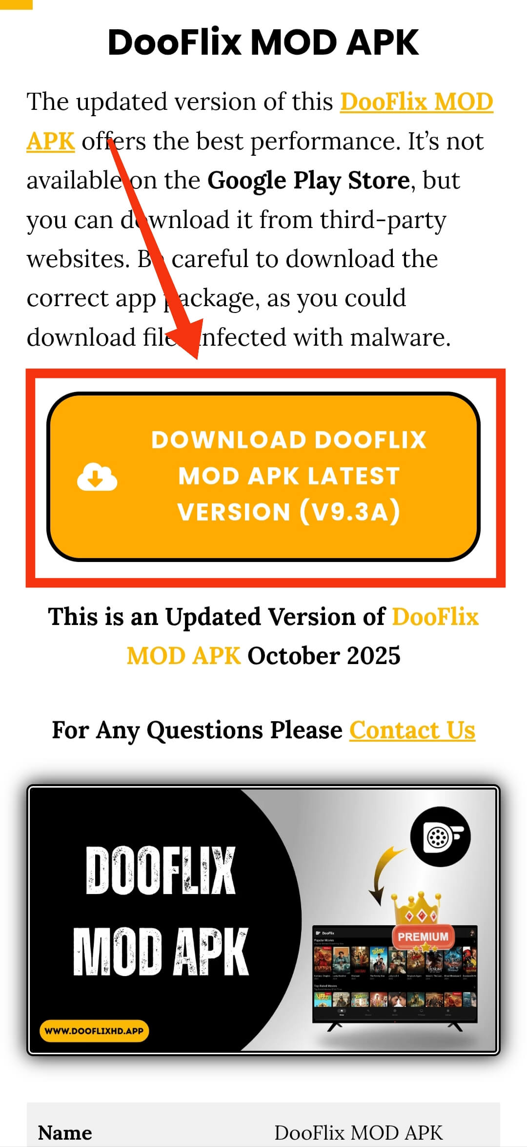 Visit trusted APK website and search for DooFlix MOD. Download latest version APK file to your Android device. Verify file size matches listed size for complete download confirmation. So APK file downloads properly without corruption or errors. And note download location for next installation step.